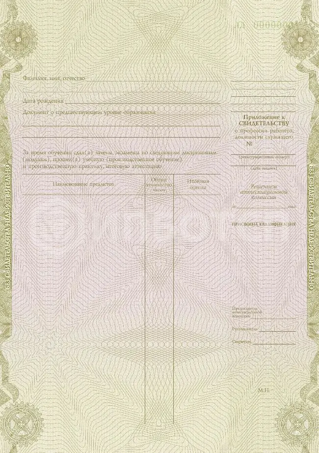 • Свидетельство о профессии рабочего, должности служащего.